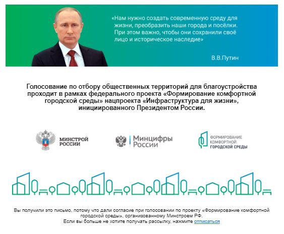 ВСЕРОССИЙСКОЕ ОНЛАЙН-ГОЛОСОВАНИЕ ЗА НОВЫЕ ОБЪЕКТЫ БЛАГОУСТРОЙСТВА ПРОХОДИТ С 21 АПРЕЛЯ ПО 12 ИЮНЯ