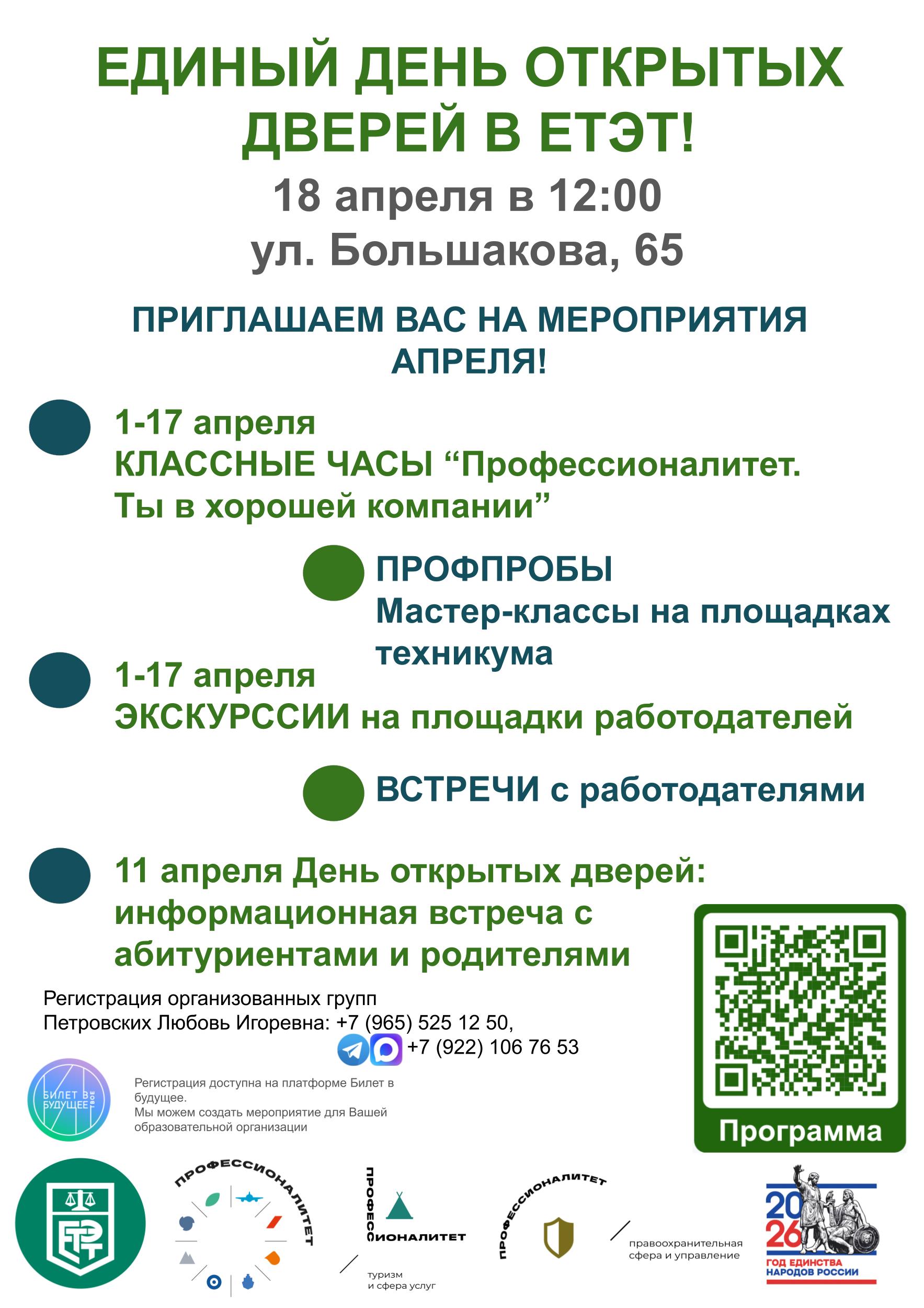 В рамках федерального проекта «Профессионалитет» национального проекта «Молодёжь и дети» и профориентационного проекта «ПрофСтарт» Амбассадоры и профориентологи ЕТЭТ приглашают будущих абитуриентов и их родителей в техникум: