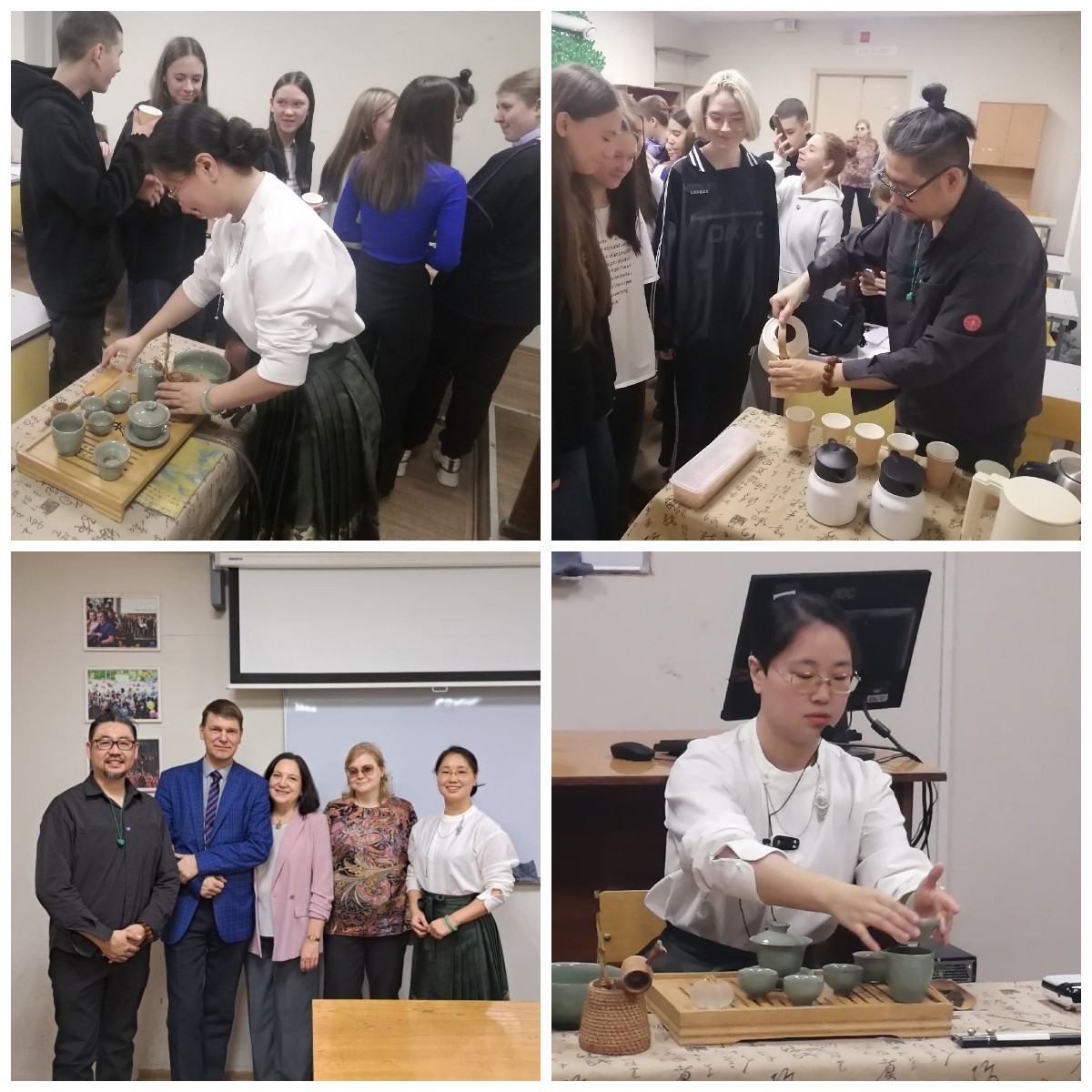 Студенты групп 1ТГУ1 и 1ТГУ2 (специальность «Туризм и гостеприимство», специализация «Гостиничные услуги»), под руководством преподавателя географии М.С. Леонтьева и преподавателя иностранного языка В.А. Липиной, получили возможность своими глазами наблюдать всемирно известную китайскую чайную церемонию. Мастера из «Цзи Ши» рассказали студентам об этапах чайной церемонии, о разнице между белым, зелёным, красным и чёрным чаем, а также ответили на многочисленные вопросы о культуре питания в Китае, о роли русского языка в современной жизни китайцев и даже о том, что китайский язык, оказывается, очень близок русскому языку – по эмоциям и по структуре… В общем, получилось здорово и интересно! Будущим специалистам по гостеприимству очень полезно знать традиции разных народов – в том числе и китайского.