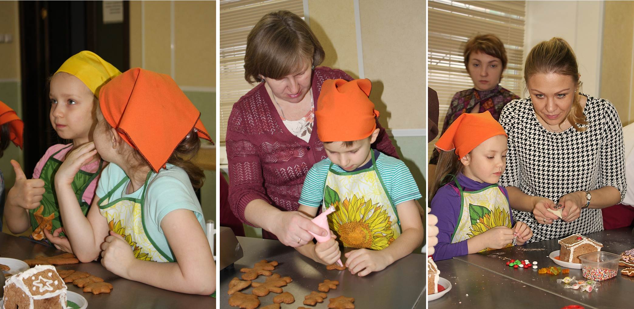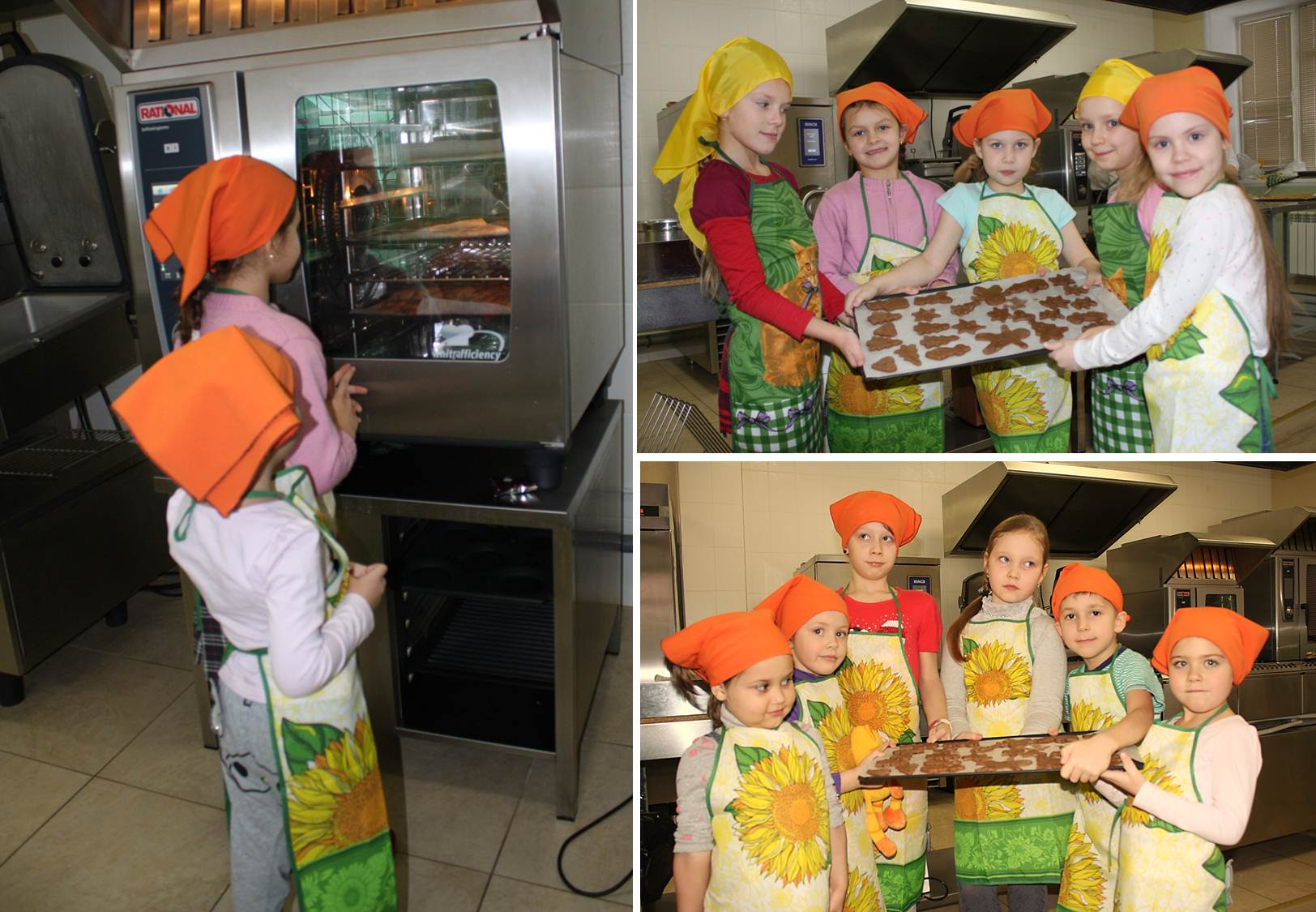 Ребятишки старательно клеили детали домика кремом, раскатывали огромными скалками тесто и радостно вырезали из него формочками различные фигурки. С большим нетерпением заглядывали в сверкающий пароконвектомат в ожидании: когда же, когда же, когда же испекутся их пряники?!