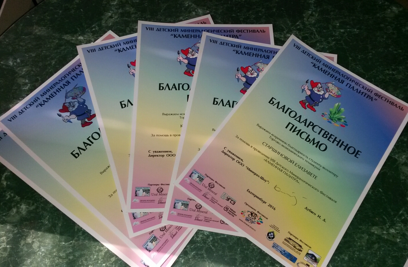 ребят- волонтеров за отличную работу на VIII Детском Минералогическом Фестивале «Каменная палитра» |