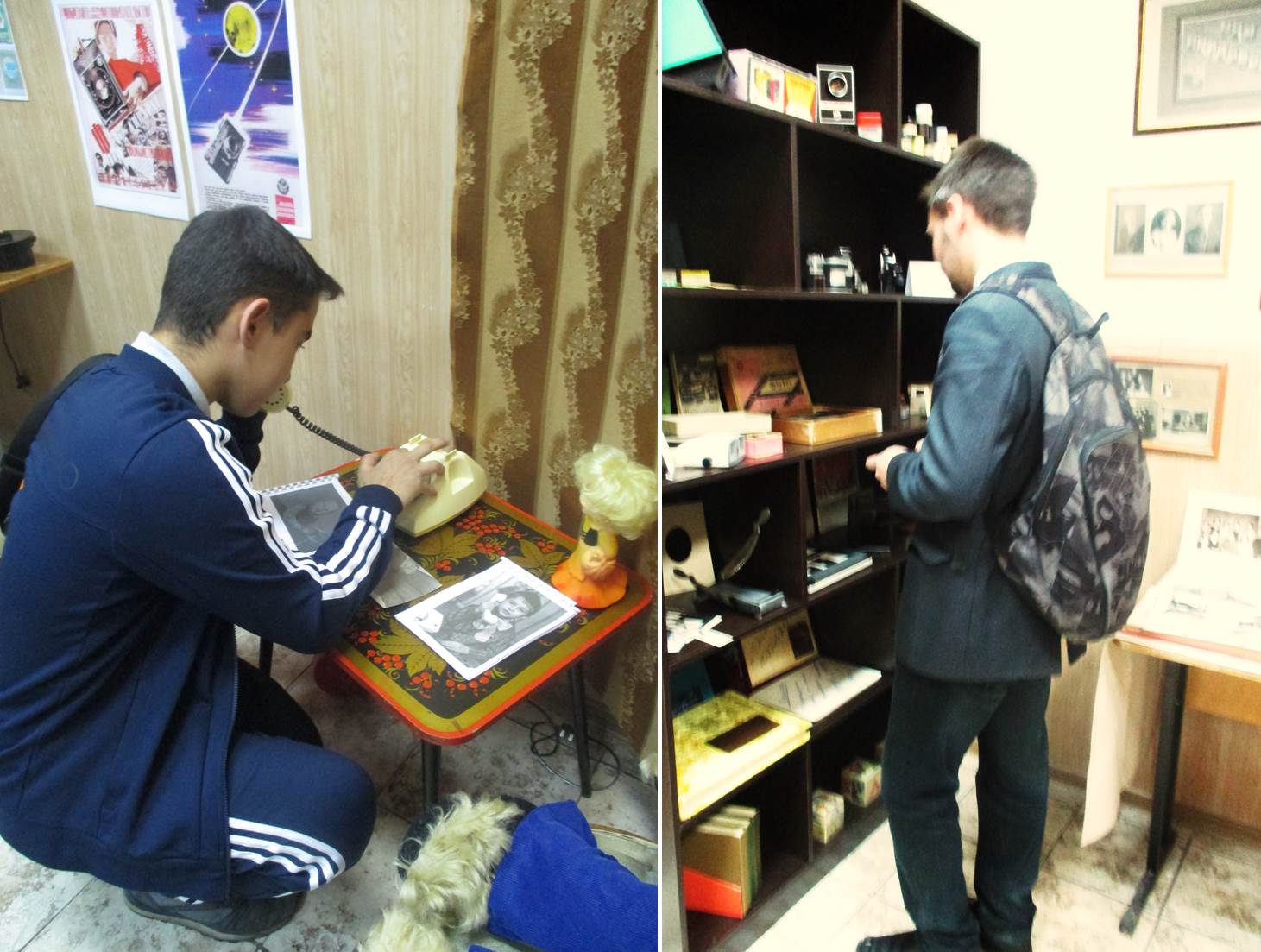 Особенно интерес вызвали игрушки-каталки, плюшевый пес, музыкальные инструменты, "сокровища" хулиганов, головоломки, удивил процесс печати и ретуши фотографий. Вещи, кажущиеся совершенно знакомыми и привычными для старшего поколения, могут стать предметом искреннего интереса у студентов. Так, нашим юным гостям было очень любопытно понабирать номер на дисковом телефоне! :)