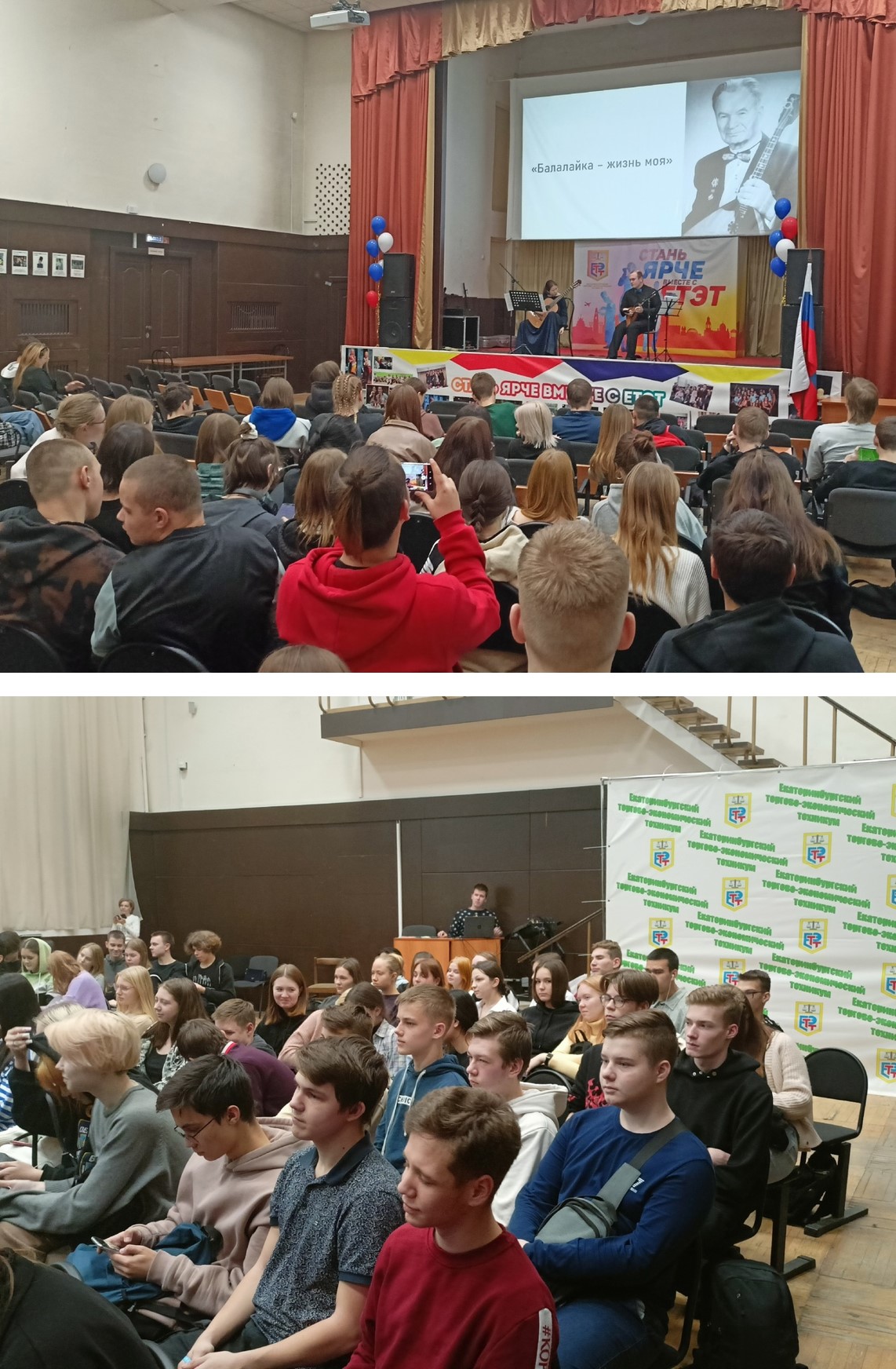 16 декабря студенты первых курсов побывали на концерте, который был проведен артистами ДК "Лаврова" Иваном Вороховым (балалайка), Айдарлм Галиакбаровым (гитара), Маргаритой Митрофановой (балалайка, гитара).