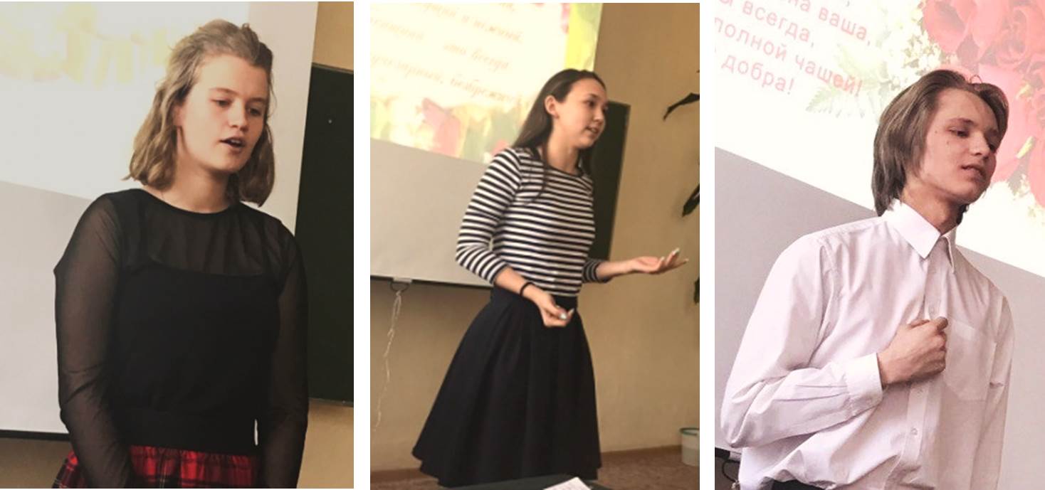 Ну и в довершение темы "женщин" звучат прекрасные строки из стихотворений Сергея Есенина, исполненные Нафиковой Викторией, Васильковым Вадимом, студентами группы 1Бт-9 и Денисовой Екатериной, студенткой группы 1Т-2.