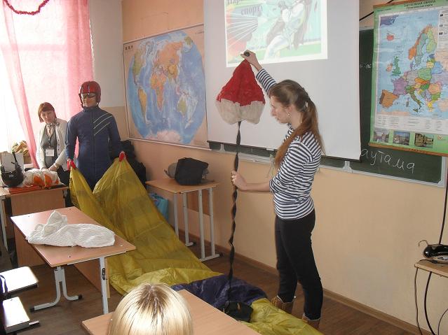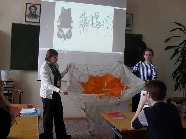 Программа эта посвящена парашютному спорту. Наши гости – сотрудники музея «Крылатая гвардия» - рассказали студентам групп 1П9 и 1РС9 о всех тонкостях укладки парашюта, о непростых буднях спортсменов-парашютистов и о их успехах на показательных соревнованиях – в том числе в Дубаи (ОАЭ).