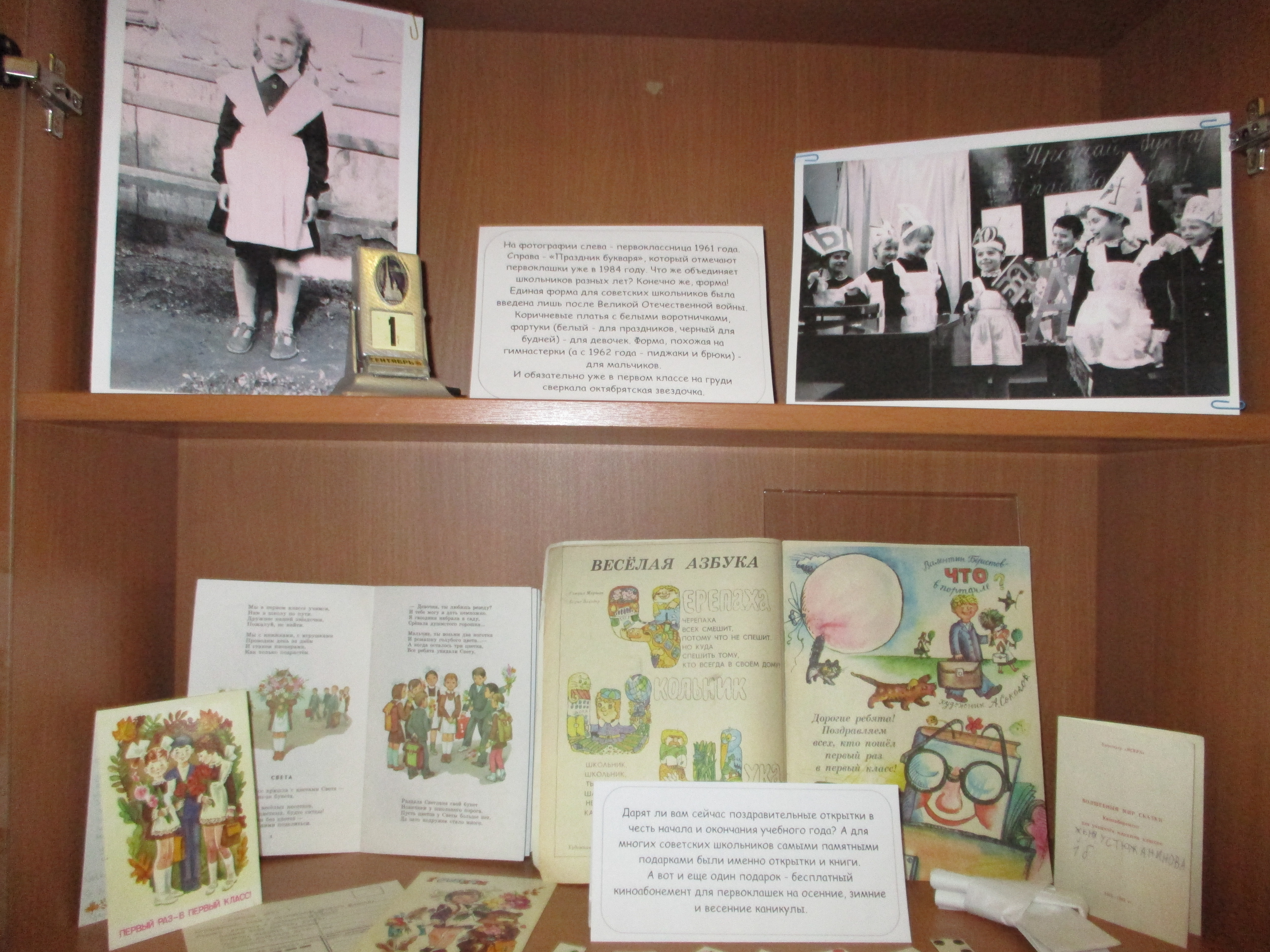 А еще на выставке можно увидеть школьную форму разных лет и необычный настольный календарь, почитать поздравления с 1 сентября (традиция, которая, увы, осталась в далеком прошлом).