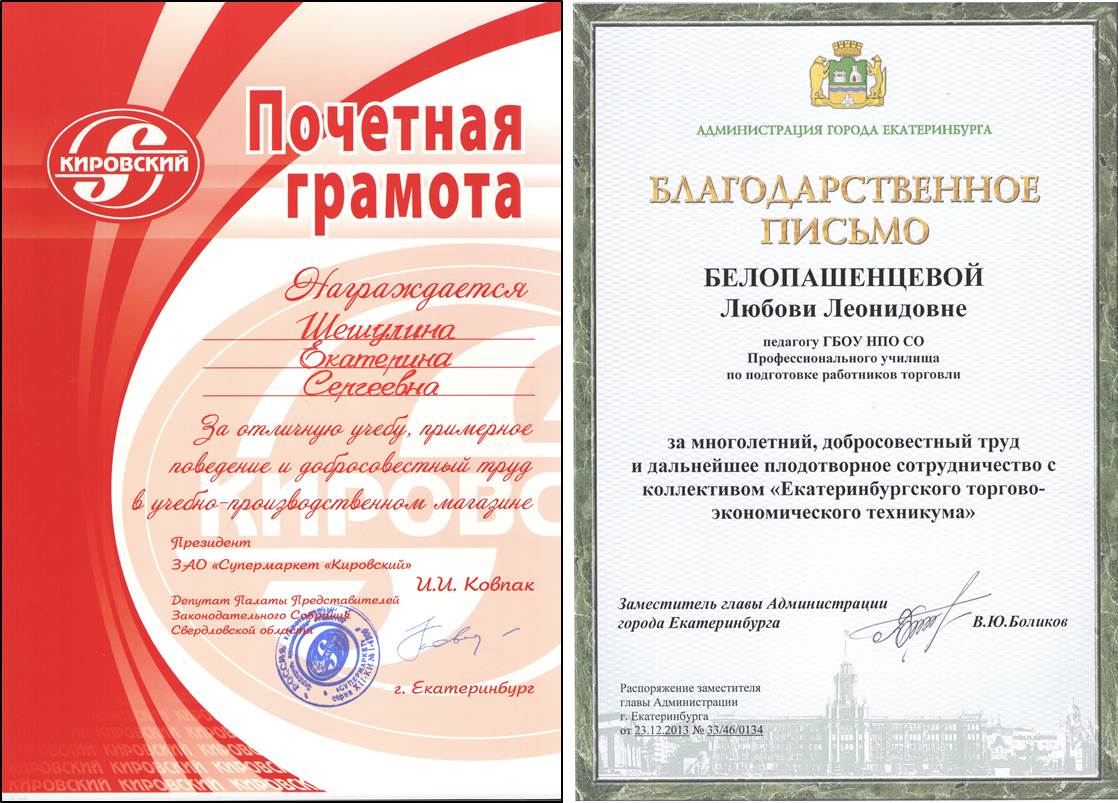 Еще одним приятным моментом стало вручение благодартсвенных писем от Администрации города Екатеринубрга преподавателям и мастерам производственного обучения, готовящих будущих продавцов.