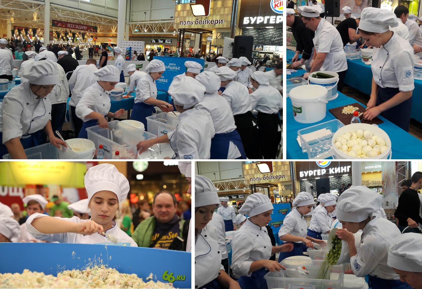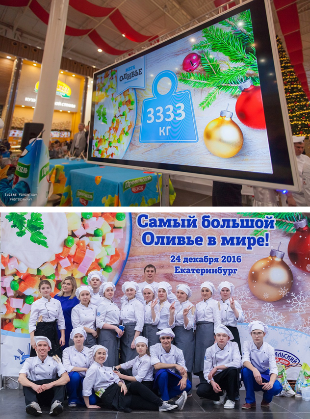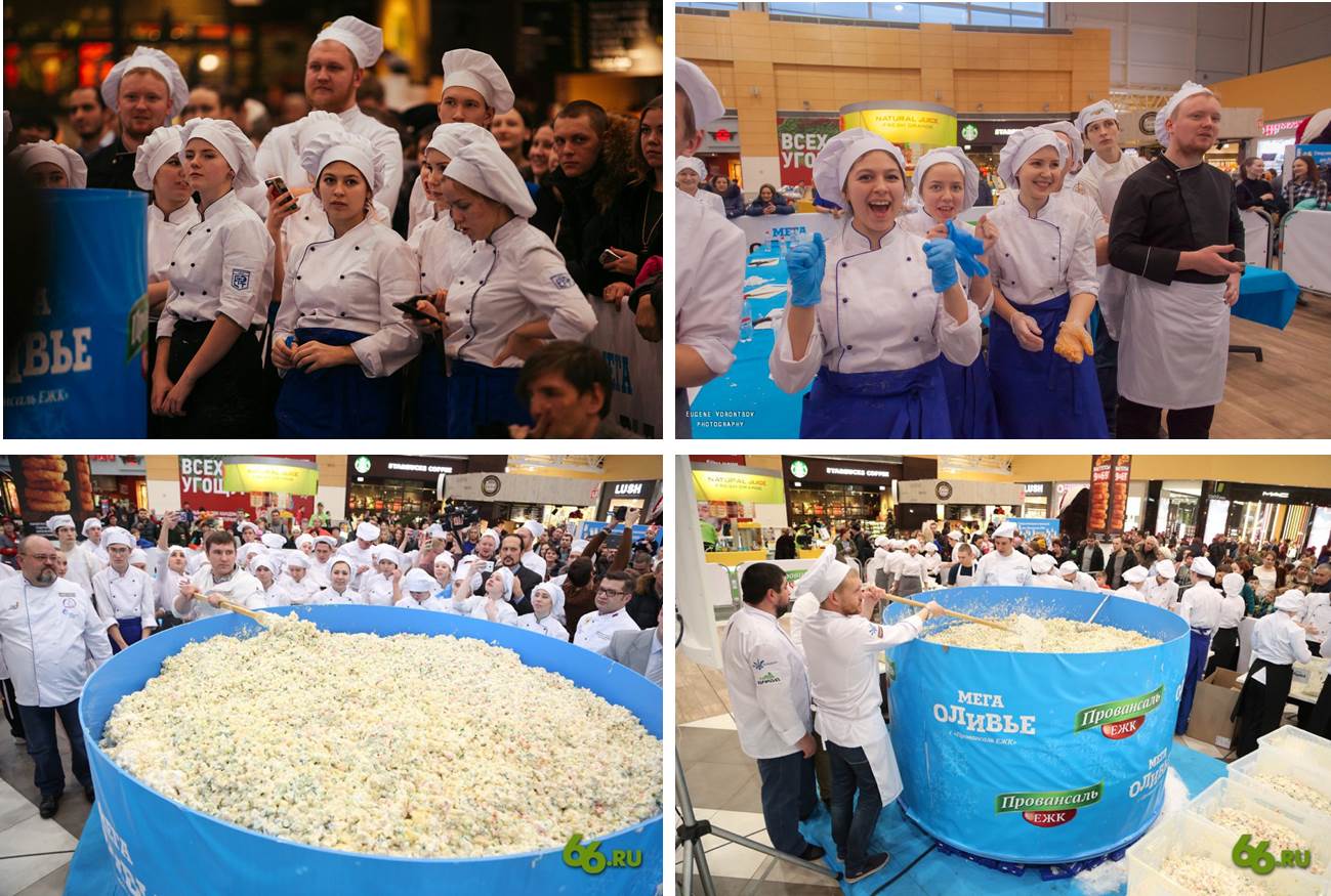 В субботу, 24 декабря, в торговом центре «МЕГА» 60 поваров, в том числе 30 студентов ЕТЭТ, приготовили 3333 килограмма салата «Оливье».