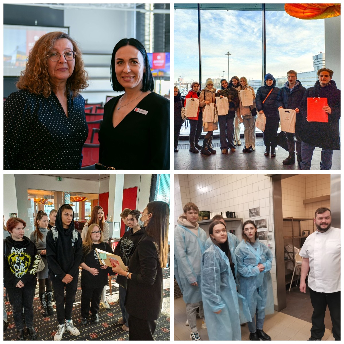 24 ноября Сити Отель Аэропорт Екатеринбург провел день открытых дверей «Карьера в гостеприимстве», где в режиме живого общения студенты встретились с генеральным директором Ворошиловым Алексеем Александровичем и менеджером по работе с сотрудниками Рысиной Светланой. Все в полной мере ощутили и оценили гостеприимство и радушие. Для групп 4Т1, 4Т2 и 1ТГ-2 не только провели экскурсию по лучшей региональной конгрессной гостинице России, показали разные категории номеров, конференц-залы, ресторан Sunlight, но и открыли кухню. Что примечательно, о специфике работы разных цехов рассказал сам шеф-повар Роман Дмитриев (выпускник ЕТЭТ!) А какие угощения подготовил Азимут! Каждому студенту вручили сувениры. Но самое важное - пригласили на практику с возможностью трудоустройства, рассказали об условиях работы и возможностях карьерного роста и передвижения внутри сети. Мы убедились – в отрасли туризма и гостеприимства огромные перспективы, и двери открыты для наших студентов.
