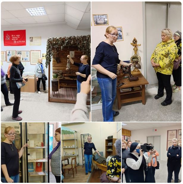 29 сентября 2023 в музее Екатеринбургского торгово-экономического техникума Устюжанинова Е. О., Сахипова Л.Ф и актив группы 2К-2 провели встречу с пожилыми людьми Комплексного центра социального обслуживания Кировского района. Проследовав в Музей истории техникума, участники экскурсии узнали, что его история начинается с открытия в 1924 году.