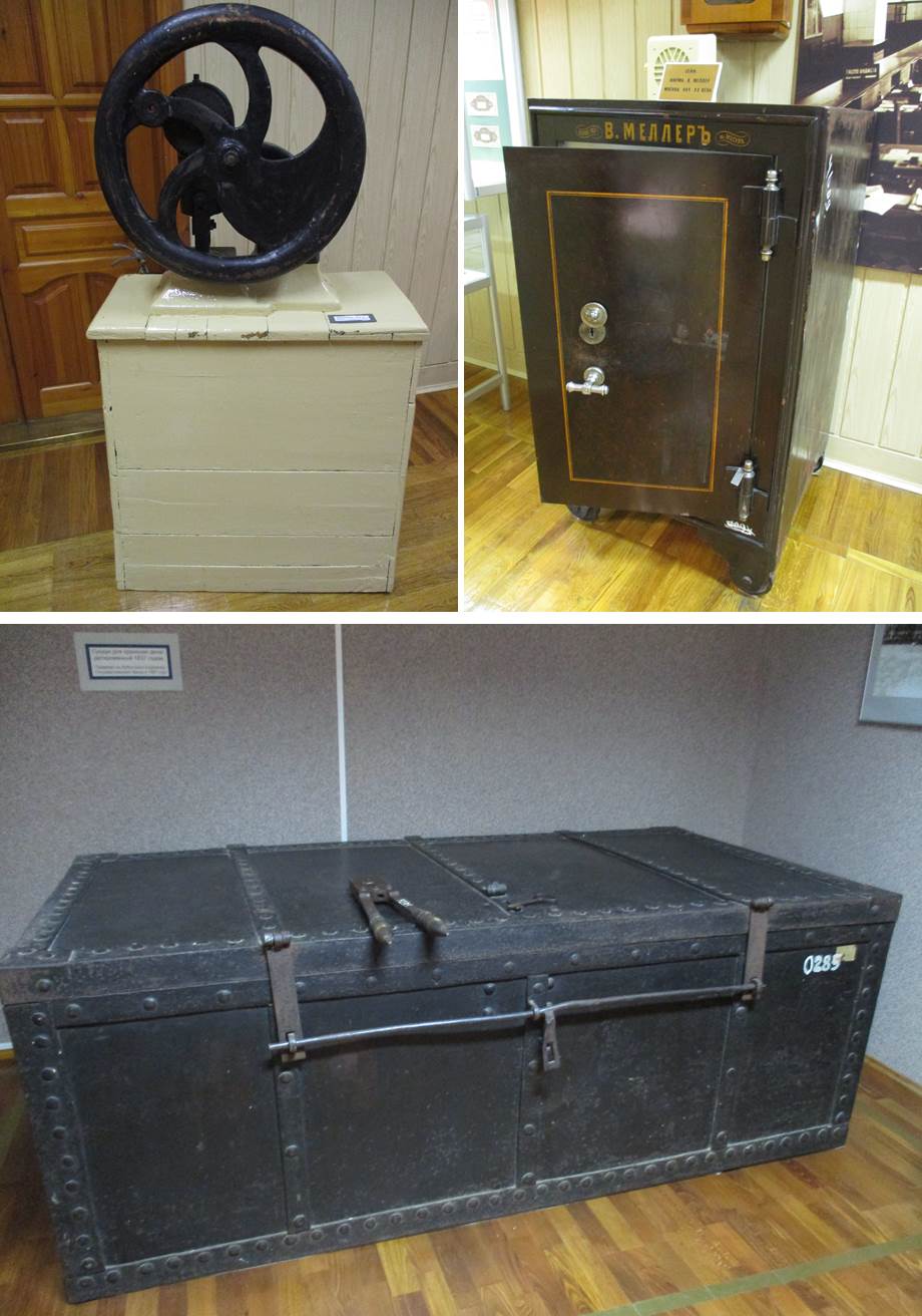В музее много весьма внушительных экспонатов – например, дырокол, сундук двухметровой длины, в котором хранили деньги и 700-килограммовый сейф! В отдельном зале можно было увидеть денежные знаки различных эпох, многие из которых действительно уникальны.
