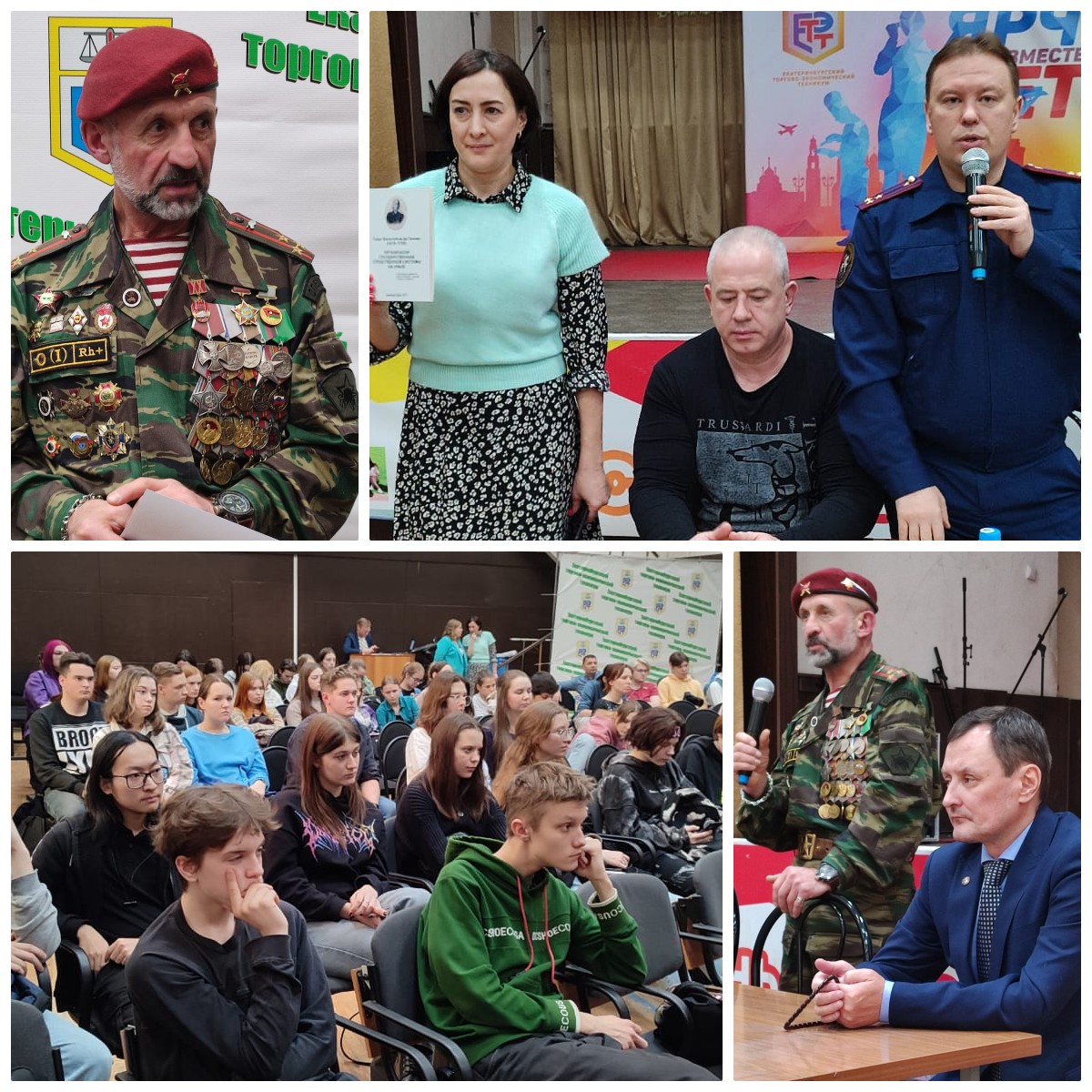 Дмитрий Викторович Ворошилов продемонстрировал студентам документальный фильм о создании отряда "Россы", о его первом командире и создателе Герое России Владимире Ласточкине. Кавалер Ордена Мужества и Красной Звезды, участник боевых действий в Афганистане и Чечне Игорь Гудков поделился своими личными воспоминаниями о Владимире Ласточкине и событиях тех далеких дней. О героических моментах службы сотрудников Следственного комитета рассказал Павел Романов. Директор ГАПОУ СО "Екатеринбургский торгово-экономический техникум" Владимир Васильевич Протасов вручил участникам мероприятия Благодарственные письма и сувенирные монеты, посвященные учебному заведению.