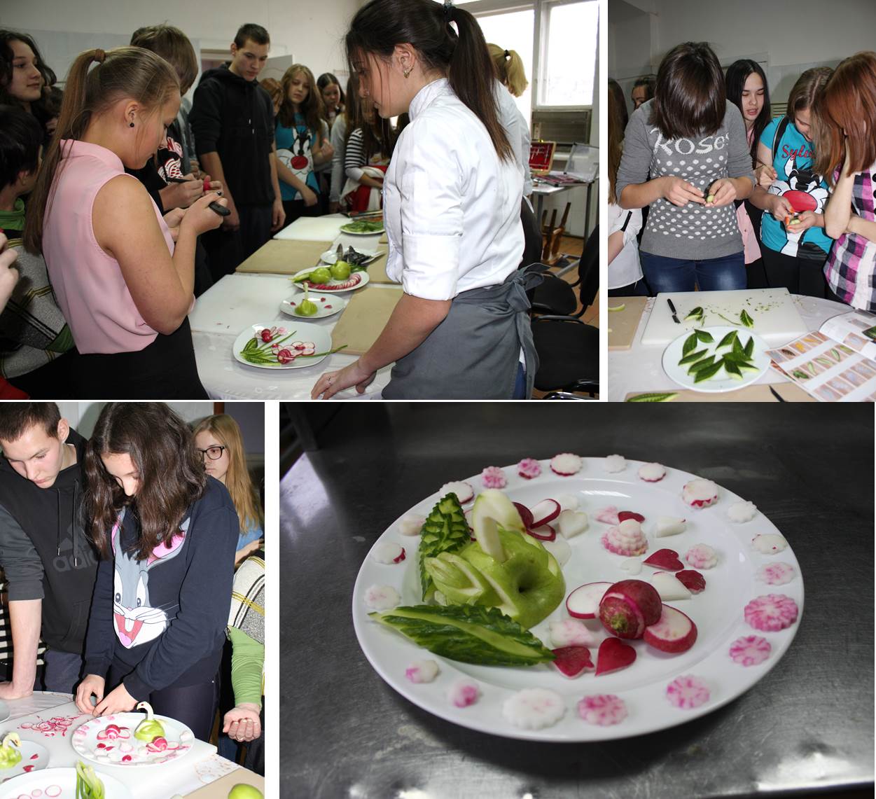 В цехе кулинарного мастерства, ученики «выстругивали» композицию из овощей и фруктов.