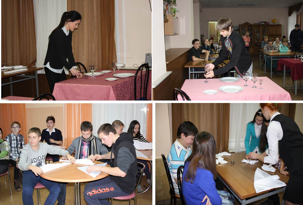 В цехе ресторанного мастерства ребят обучали мастерству складывания салфеток и изящной сервировке стола.