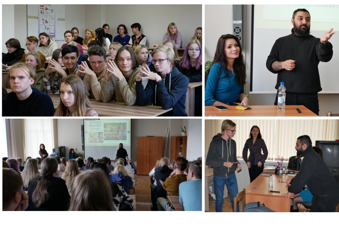 Сегодня, 28 сентября, состоялась встреча с представителями социального партнера техникума по организации практики студентов — ресторанной компанией Center Franchising. На данный момент сеть насчитывает 13 ресторанов с абсолютно разными концепциями (рестораны АГОНЬ, Большой грузинский, 1991, Карбонара, Пинцерия Бонтемпи, Даббл бар, Гранд Буфет Екатеринбург и др). На встрече присутствовали студенты групп нового набора, а также студенты выпускных групп специальности «Технология продукции общественного питания». Спикер Михаил Аракелов (бренд-шеф компании) и директор по персоналу Елена Смышляева рассказали ребятам о концепциях каждого ресторана в отдельности, об условиях прохождения стажировок и действующей программе наставничества; о главных особенностях успеха своих ресторанов и перспективах развития компании. Михаил поделился с ребятами своей личной историей успеха, как будучи поваром в третьем поколении, ему удалось достичь настоящих высот в кулинарном искусстве, о стажировках в разных уголках мира, «рецептами» как бороться с профессиональным выгоранием и любить то, что ты делаешь именно здесь и сейчас, также Михаил поделился с ребятами и тем, что сейчас он в процессе написания своей книги, которая уже в скором времени будет анонсирована в профессиональных кругах. Среди ребят был проведен конкурс на самый лучший и интересный вопрос, ребята принимали активное участие и задавали самые каверзные и любопытные вопросы, в итоге, Михаил выбрал трех победителей, которым были вручены подарочные сертификаты на посещение ресторанов сети. Встреча получилась очень позитивной, душевной, познавательной, а главное «заразительной» любовью к профессии «Повар»!