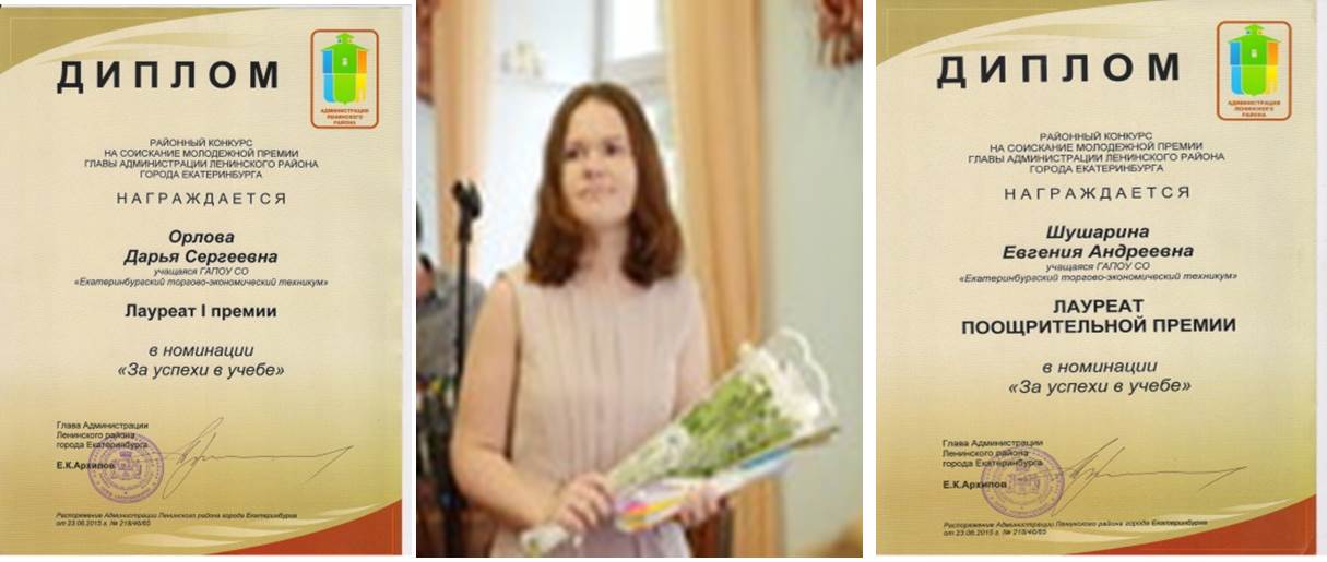 Мы поздравляем наших лауреатов и желаем им удачи, радости, успехов и новых открытий. Пусть ваши личные победы и достижения станут надежным залогом укрепления «Екатеринбургского торгово-экономического техникума»!