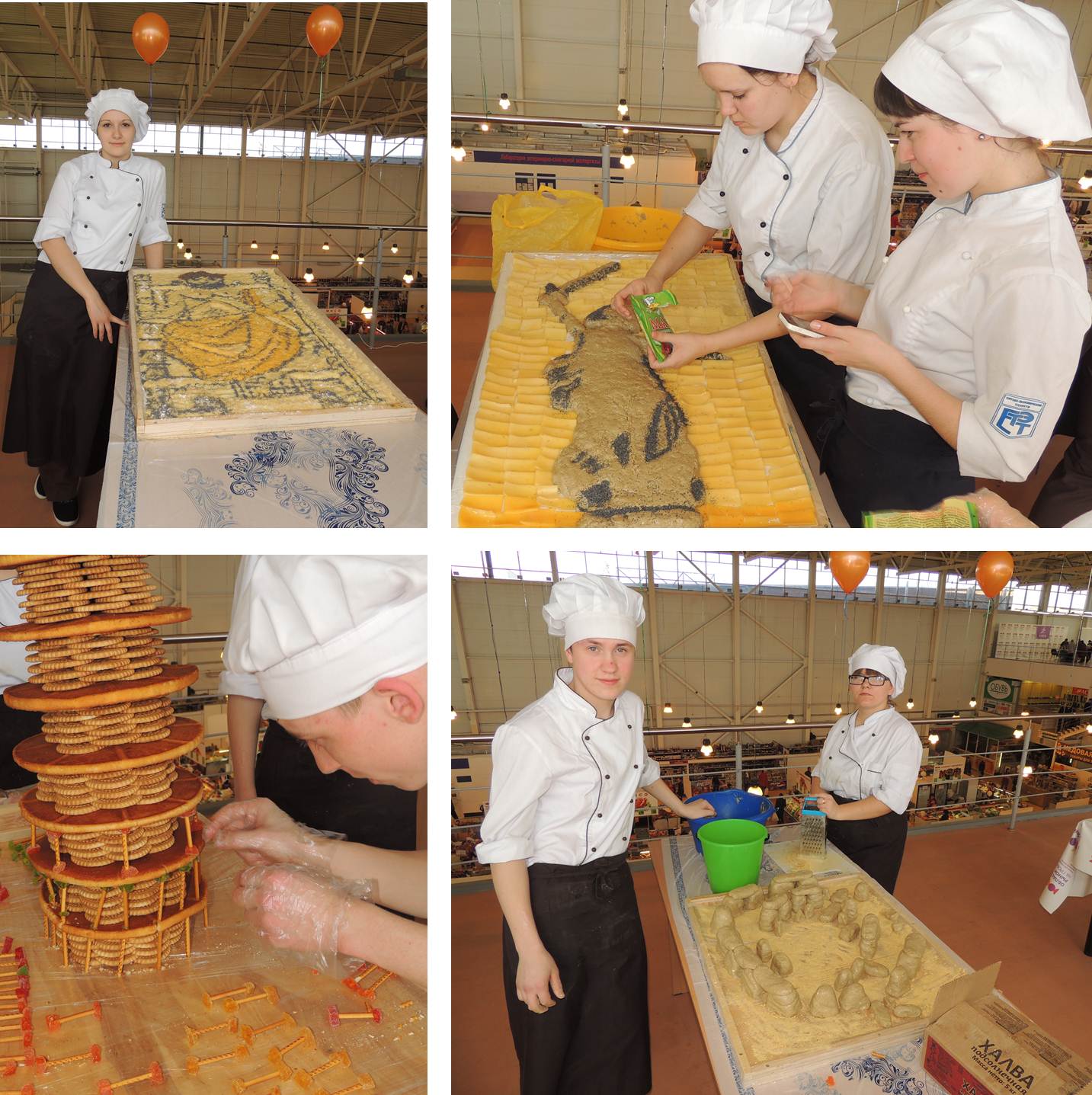 Конечно, можно, но только если все это создано руками наших студентов! Под умелым руководством Т. Е. Заплатиной и О. Н. Стояновой в выставочном комплексе рынка на ул. Громова, оживали даже утраченные легенды и чудеса Света! Сделанные из шоколада, халвы, печения, коржей, кокосовой стружки, сыра, колбасы, мармелада, арахиса и еще множества ингредиентов, они поражали воображение зрителей. Особенно тонкой, почти ювелирной работы требовала наклонная Пизанская башня!