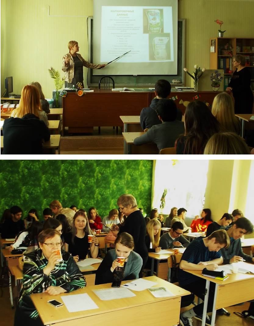 Преподаватели Соломеина С.С. и Сычева Г.Ф. обратили внимание студентов и гостей на особенности современного ассортимента и наличие должного пакета сопроводительных документов. Сычева Г.Ф. рассказала про отличительные признаки разных видов кисломолочной продукции и требования ГОСТов.