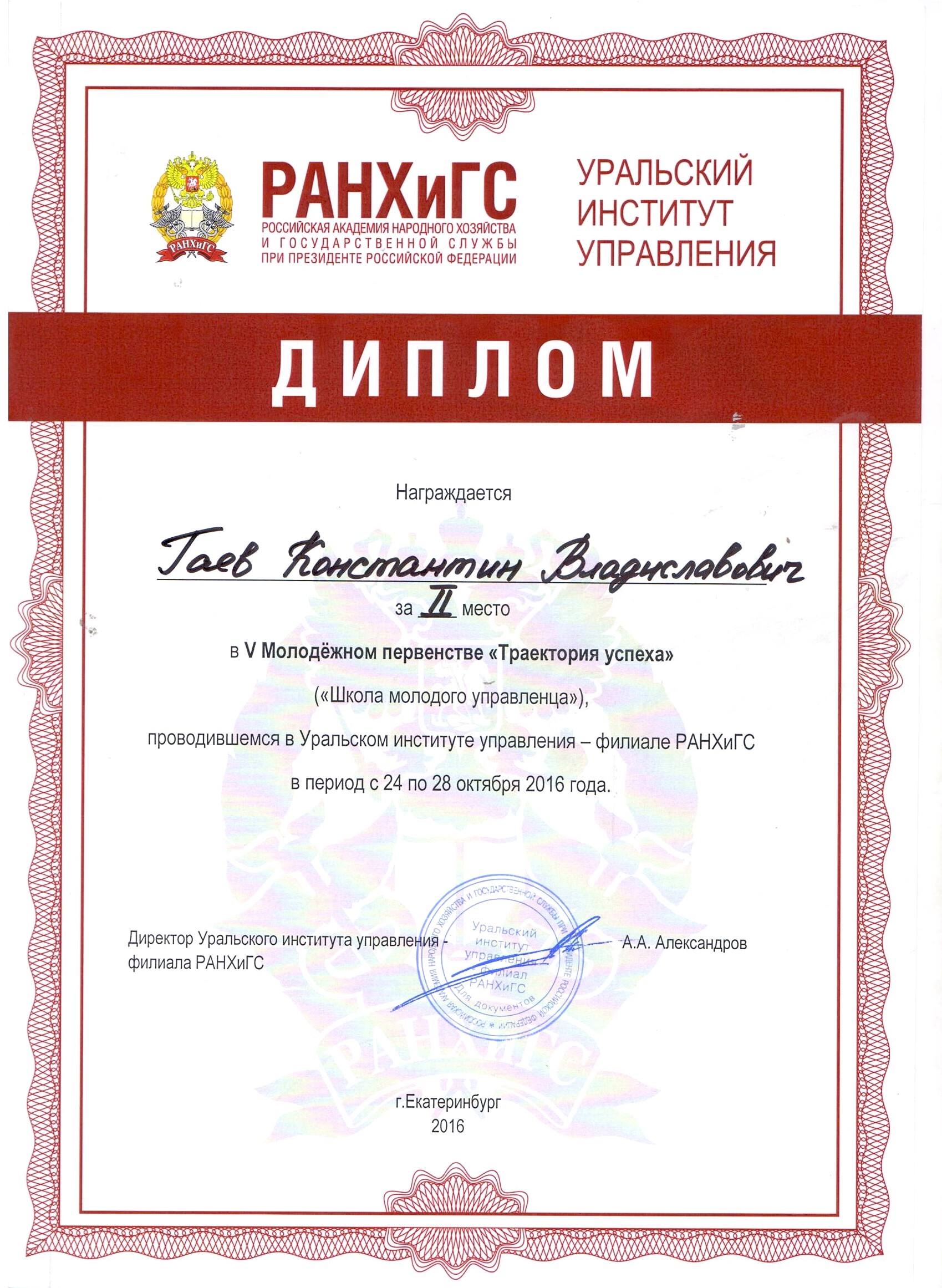 Ему были вручены не только призы, подарки и диплом, но и сертификат, предоставляющий 5 дополнительных баллов при приеме на обучение на бакалавриат и специалитет в Уральский институт управления - филиал РАНХиГС.