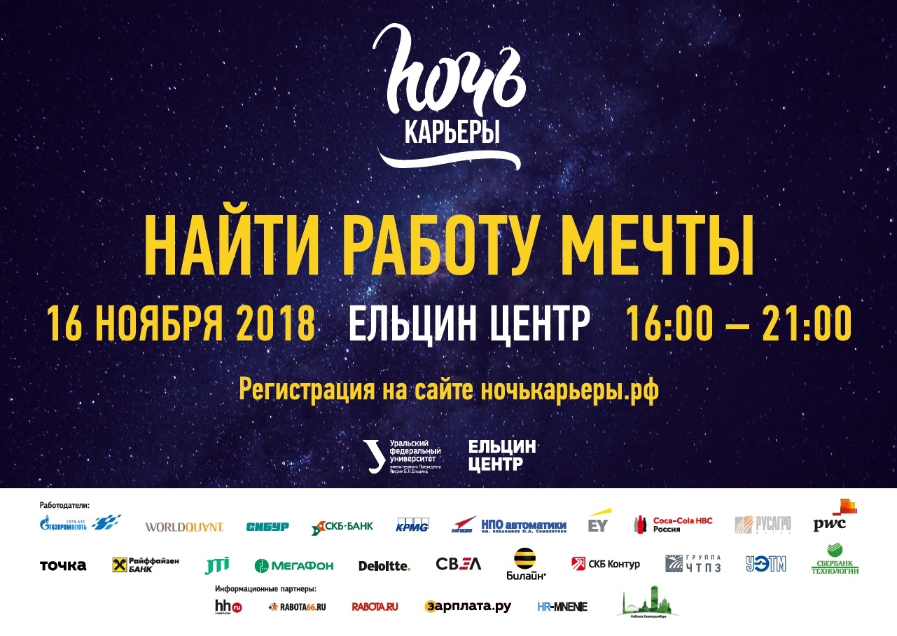 16 ноября 2018 года в Ельцин-центре состоится «Ночь карьеры».