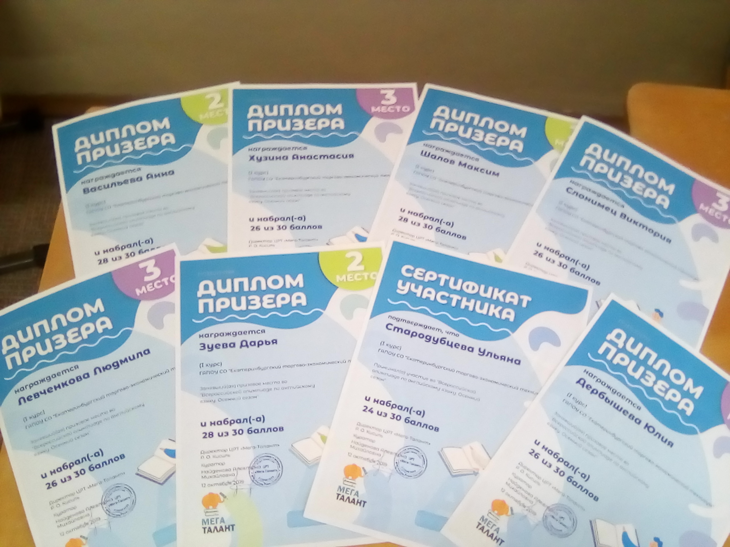 С гордостью сообщаем, что по итогам прошедшей в октябре всероссийской олимпиаде по английскому языку «Осенний сезон» из 22 студентов заняли призовые места 17 человек!