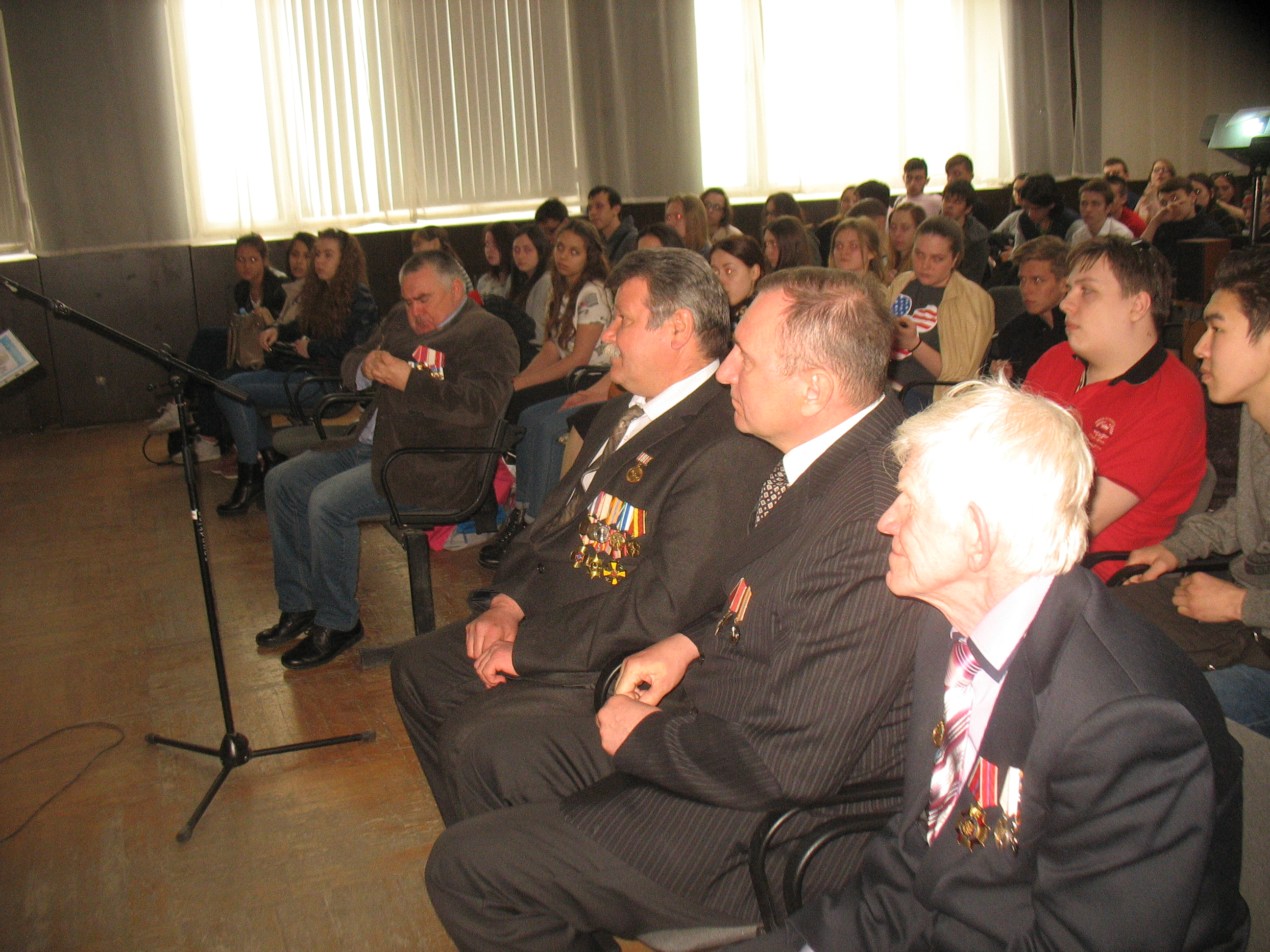 В 1986г. был сформирован Уральский полк, именно его «бойцы» из военнослужащих и добровольцы Урала пришли на встречу с ребятами - это кавалер ордена Мужества, председатель Областной организации «Союз Чернобыль России» Соломеин О. И., председатель организации чернобыльцев Орджоникидзевского района Елистратов М.И., председатель аналогичной организации Ленинского района Анашкин Виктор Михайлович, и председатель организации Железнодорожного района, директор музея «Память Чернобыля» Ермолов В.А. В понятной, доступной форме «чернобыльцы» рассказали о своих буднях в те далекие, тревожные дни. Поведали о своей работе в наше время и подарили в фонд библиотеки несколько книг о «ликвидаторах» как они себя называют. Не каждый день молодежь может пообщаться с героями, которые ценой своего здоровья предотвратили гибель всего мира. Студенты поблагодарили за рассказы и подарили гостям цветы.