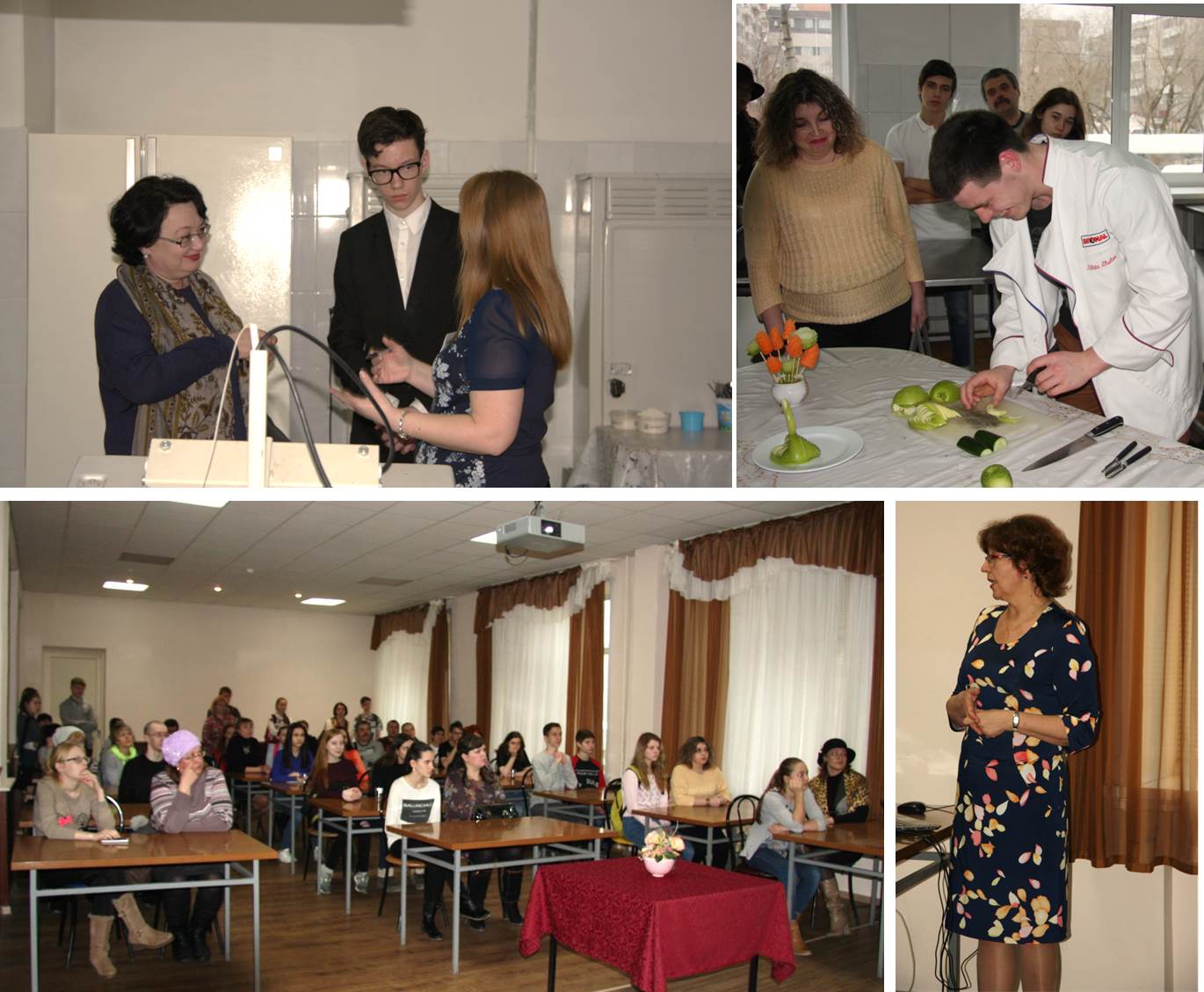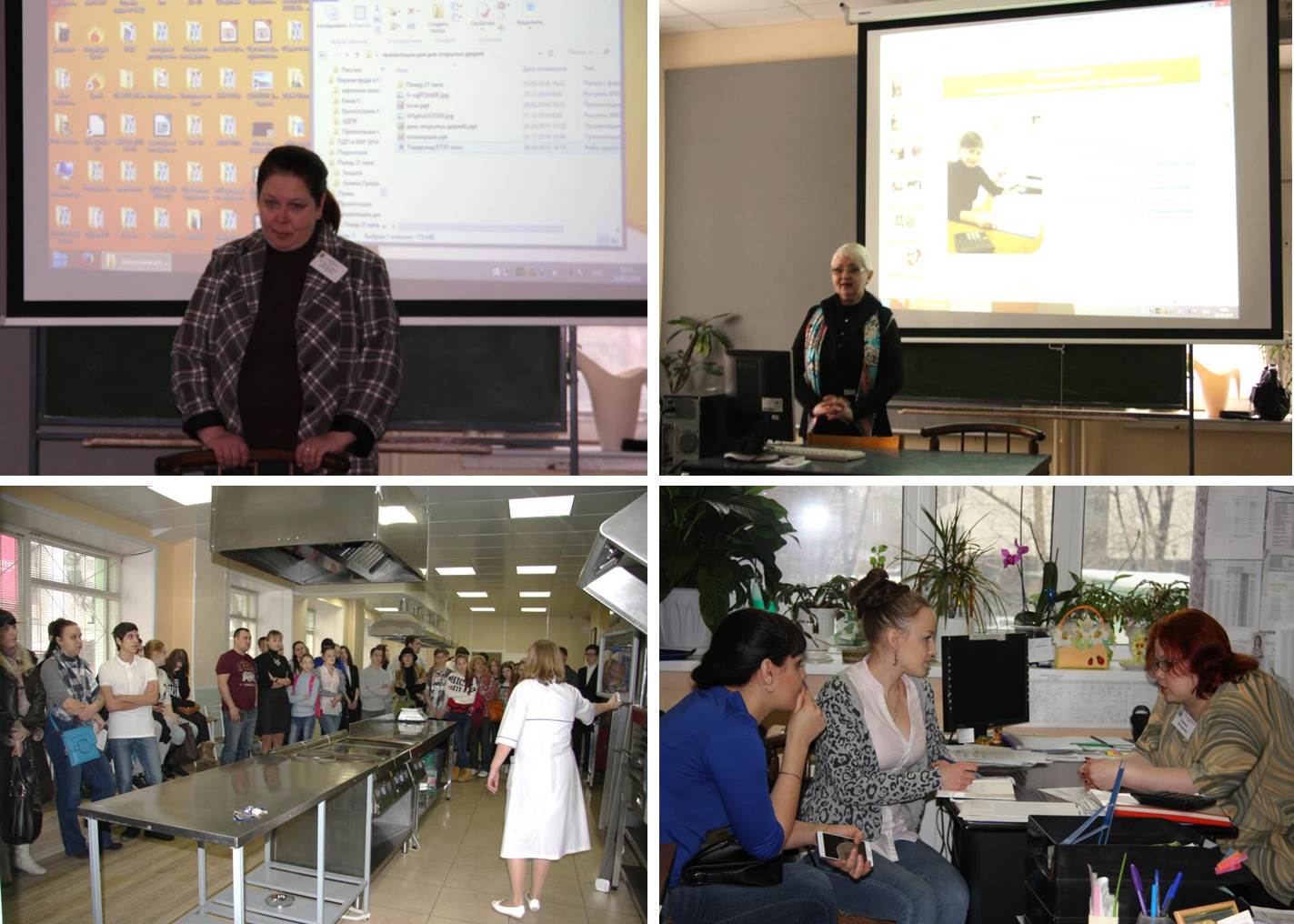 Для посетивших день открытых дверей демонстрировались мастер-классы по мастике, карамели и карвингу, демонстрировалась презентация о ресторанном сервисе, преподаватели торговых специальностей рассказывали о том, чем различаются товароведы, коммерсанты, бухгалтера, где проходят практику, в чем специфика их профессиональной деятельности.