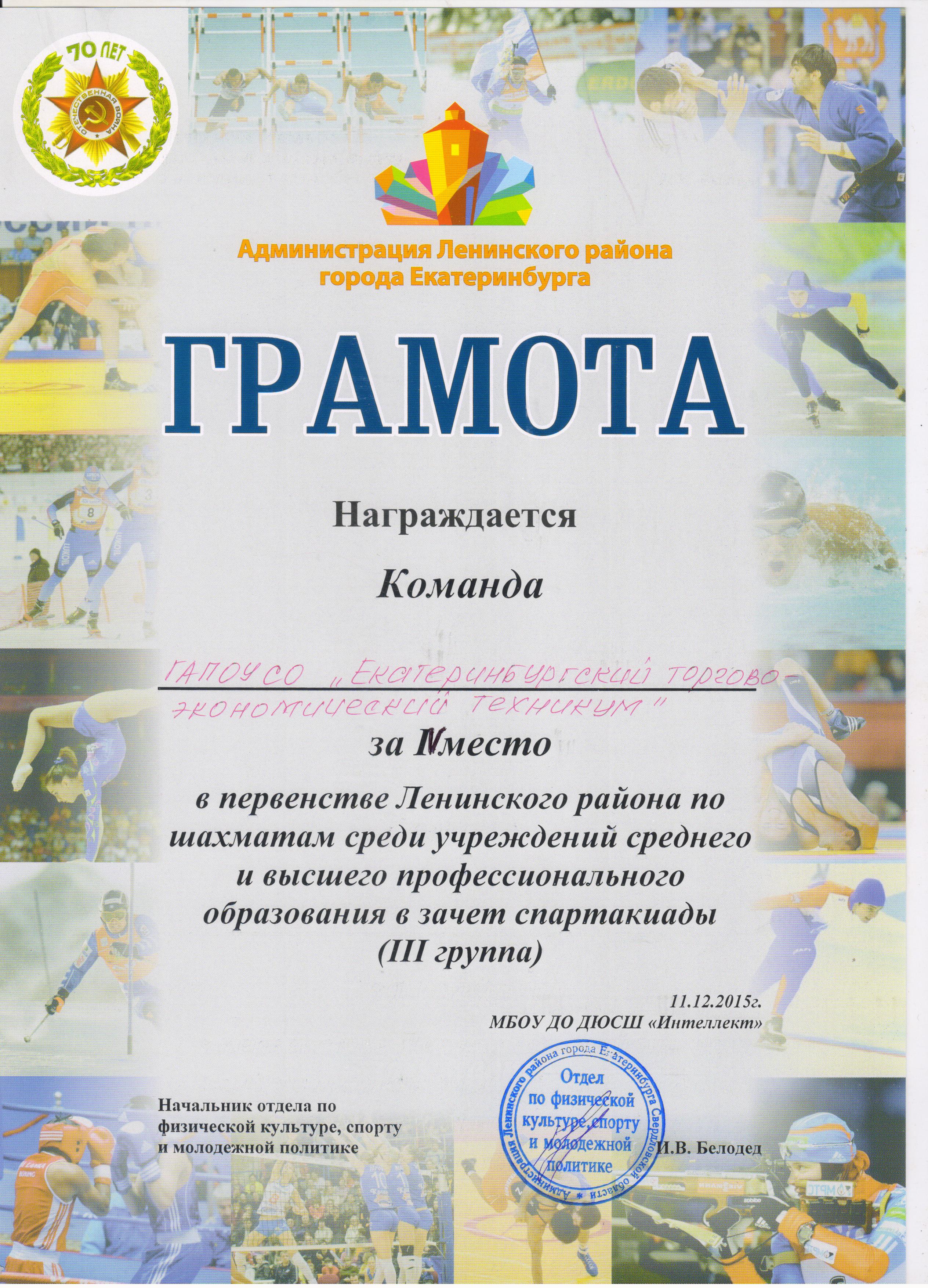 Поздравляем команду ЕТЭТ по шахматам с 4 местом в первенстве Ленинского района: