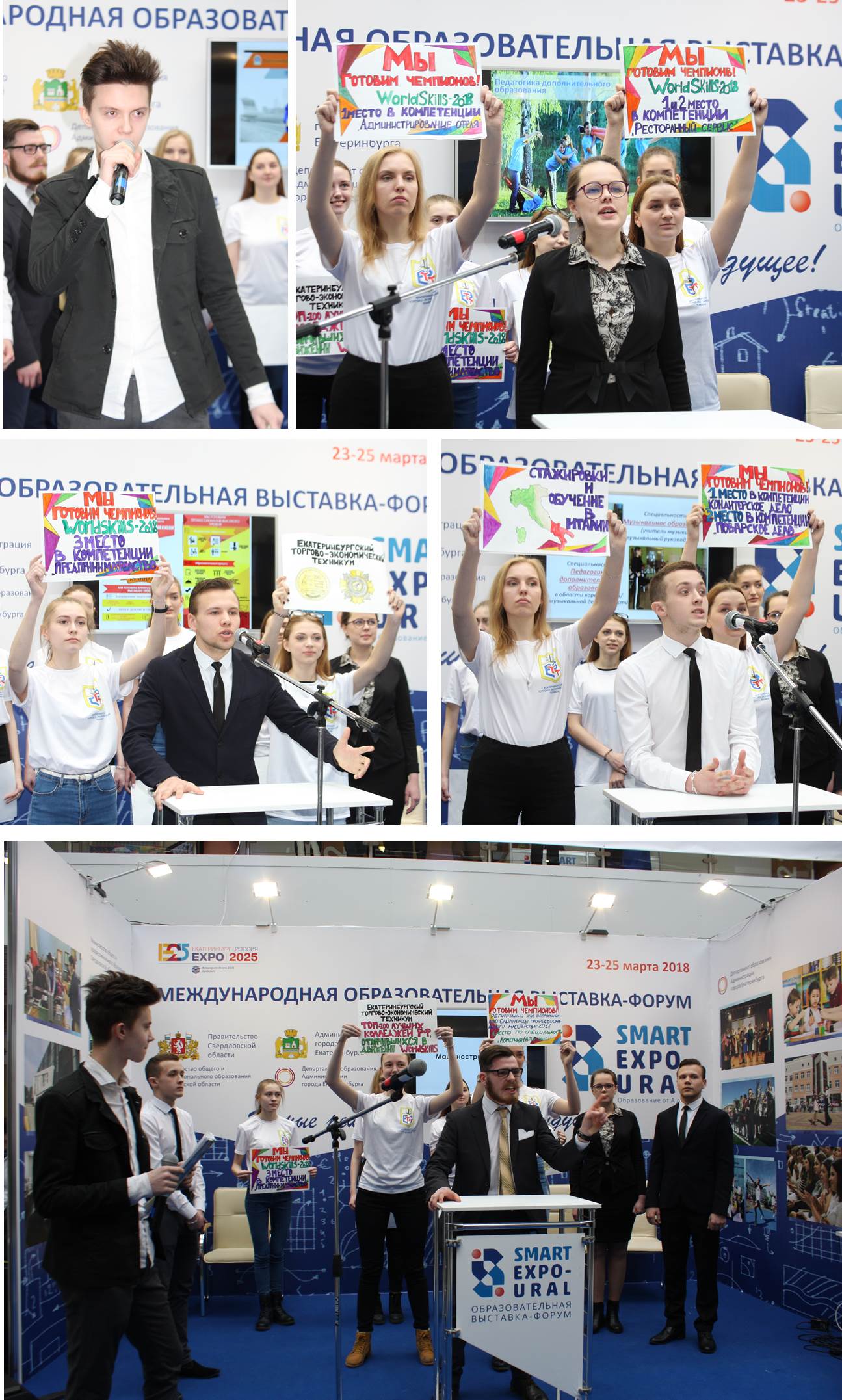 24 марта команда студентов ЕТЭТ «пиарила» техникум на образовательной выставке-форуме «SMART EXPO-URAL». За 3-4 минуты ребята должны были представить наш техникум и рассказать о его специальностях. Но как это сделать? Традиционное решение «песни-танцы-дефиле» казалось достаточно пресным, и вот тогда родилась идея представить специальности в формате предвыборных дебатов. За каждую специальность выступал один кандидат в образе реального политика: за «Экономику и бухгалтерский учет» агитировал «Путин» (Василий Гранкин), за «Технологию продукции общественного питания» - «Зюганов» (Михаил Малютин), за специальности торгового профиля – «Жириновский» (Анатолий Мухаметов), ну а завершила выступление «Ксения Собчак» (Анастасия Игнатов) - ей достались ресторанный и гостиничный сервис. В роли ведущего дебатов "Андрея Малахова" выступил Игорь Лосев.