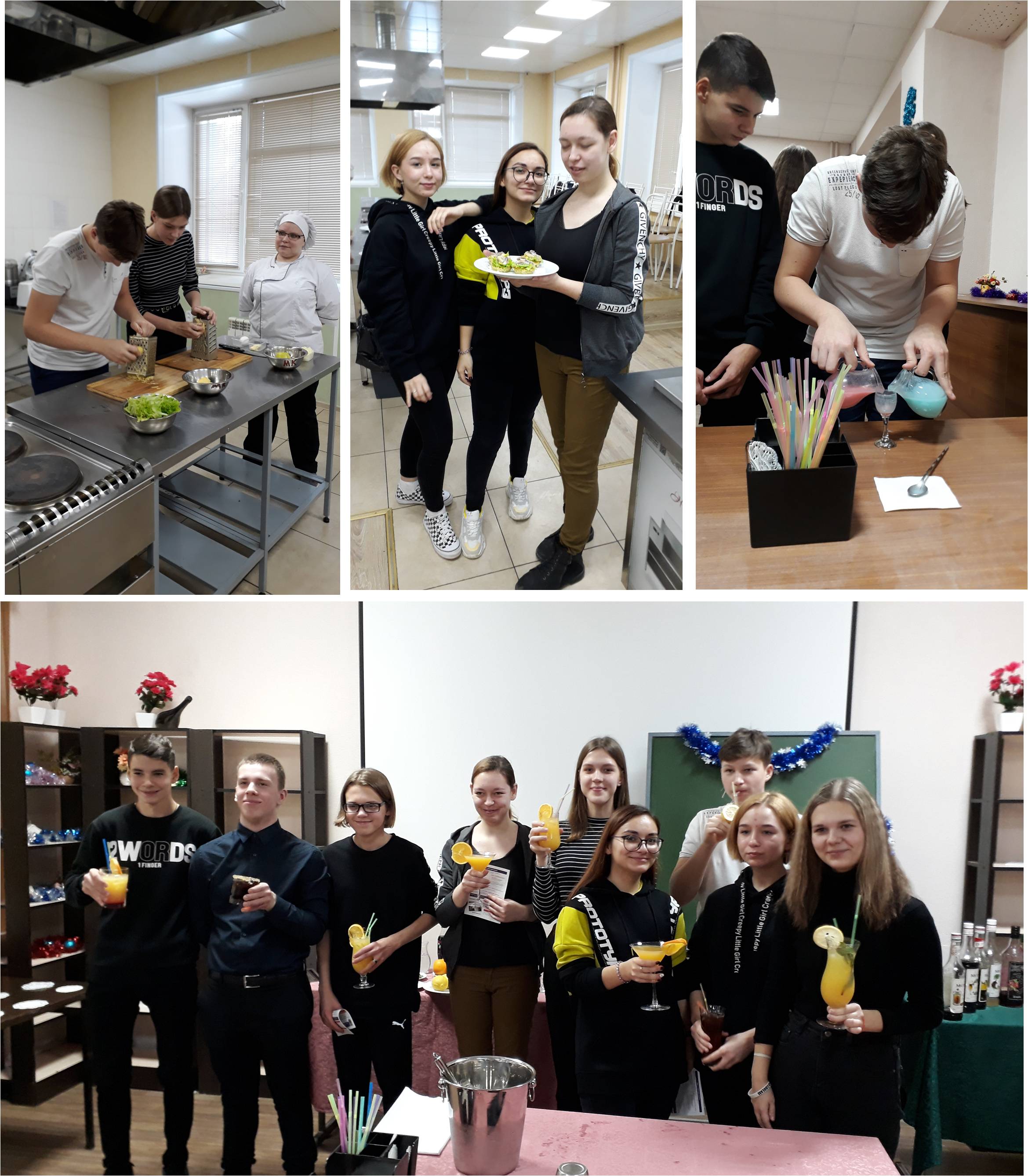 В мастерской «Ресторанный сервис» ребята научились готовить безалкогольные коктейли, а в мастерской «Поварское дело» фуршетные закуски для праздничного стола. Работа кипела очень активно, ребята пробовали свои силы, интересовались, шутили и, самое главное, дегустировали свои шедевры!!!!