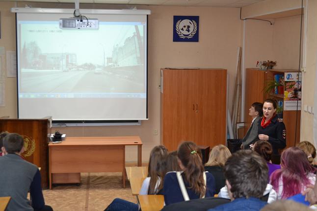 В качестве наглядного примера негативных последствий беспечного поведения пешеходов инспектор ГИБДД продемонстрировала студентам видеоролики с записями видеорегистратора, где были представлены во всей неприглядности тяжкие телесные повреждения в результате дорожно-транспортных происшествий.