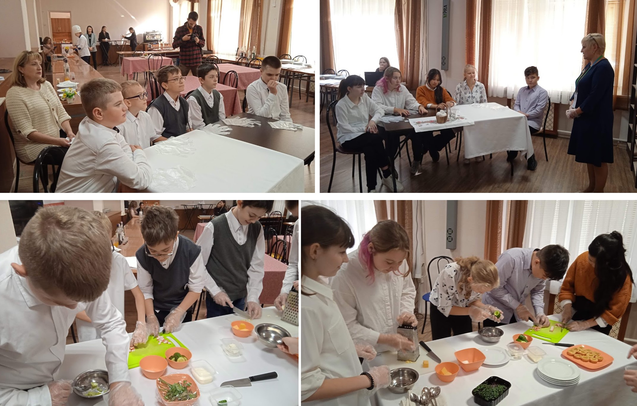 На втором этапе с ведущим преподавателем технологических дисциплин Гордеевой Наталией Сергеевной школьники готовили закуски для фуршетного стола.