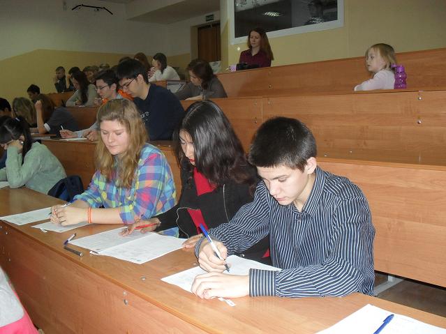 Вопросы диктанта охватывали географию России – например, расположить горные системы по убыванию их максимальной высоты (Кавказ, Алтай, Вост. Саян, Урал), рассчитать расстояние по карте с масштабом 1:10000, назвать города на туристическом маршруте «Золотое кольцо»... Вопросы оказались непростыми, но ведь это даже интересней! Пресс-служба УрГПУ заметила наших студентов – и им даже удалось дать небольшое телеинтервью сотрудникам Педуниверситета.