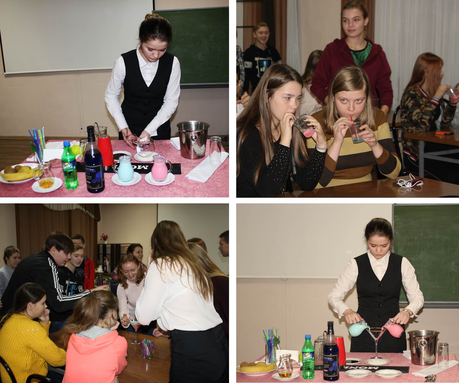 Мастер-класс по изготовлению коктейлей провели студентки техникума, уже ставшие призерами соревнований российского и международного уровня.