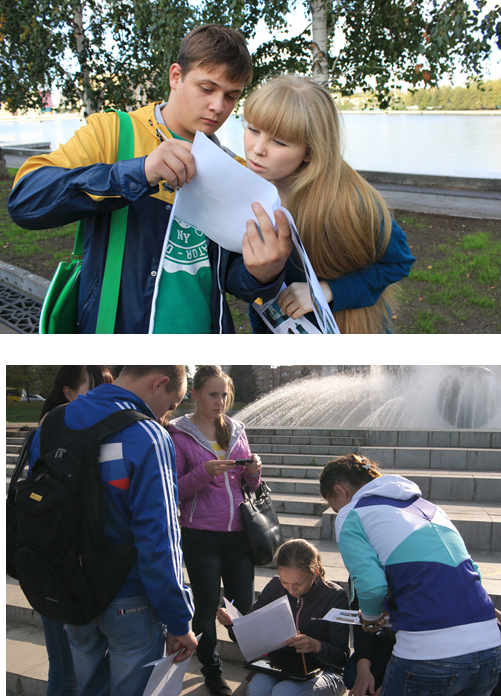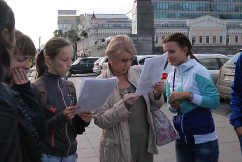 Участникам надо было найти в квадрате улиц Челюскинцев – Московская – Малышева – Бажова самые разнообразные достопримечательности города.