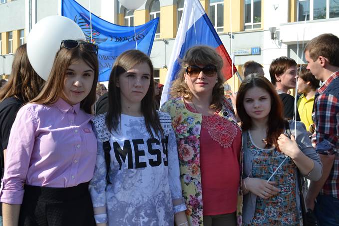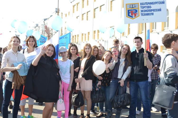 Студенты и преподаватели ЕТЭТ вместе с тысячами свердловчан вышли 1 мая на демонстрацию, посвященную празднику мира, труда и весны.