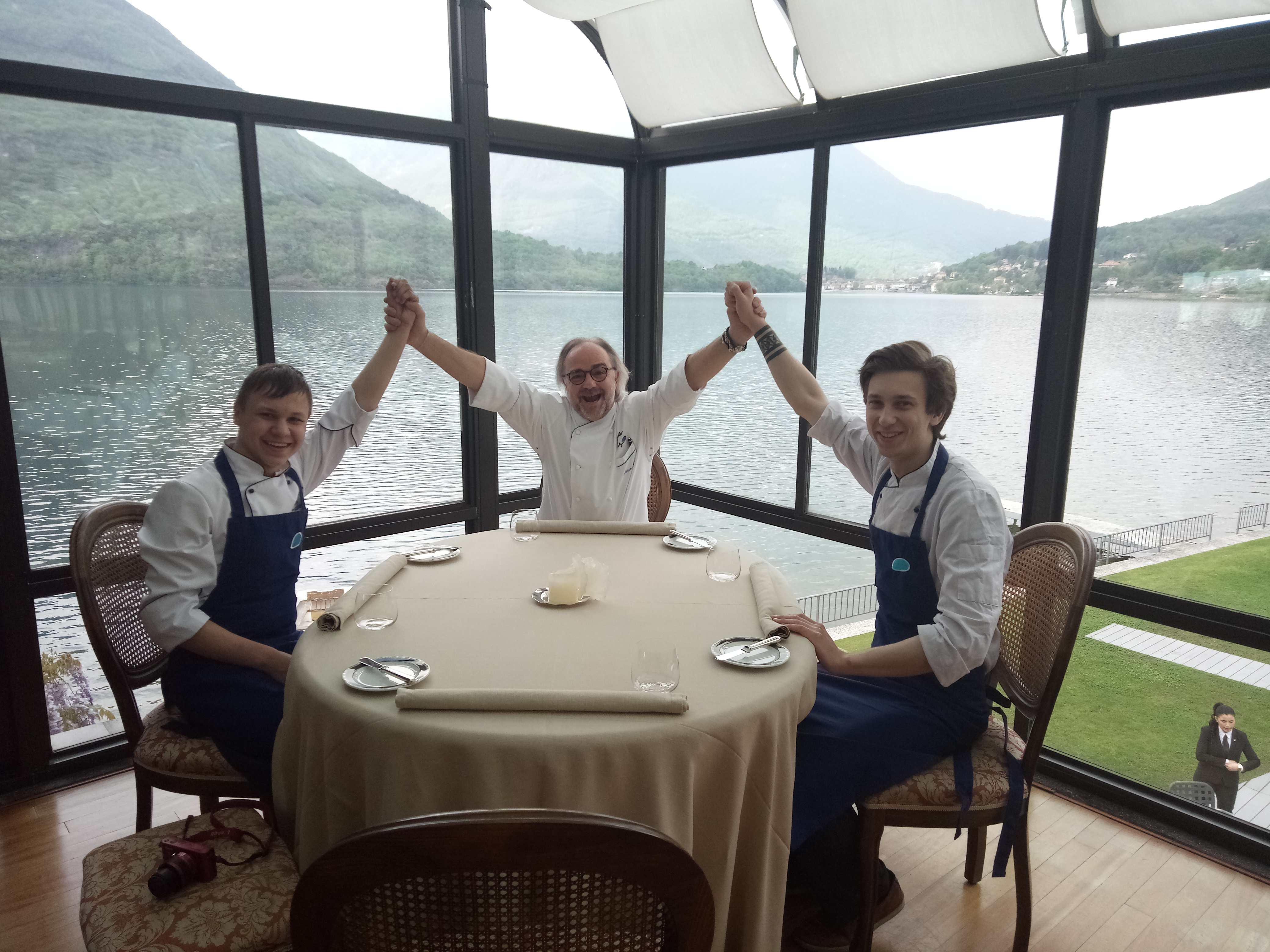 Стажировка проходила в ресторане Piccolo Lago (г.Вербания, Италия). Этот ресторан отмечен двумя звездами гида Michelin.