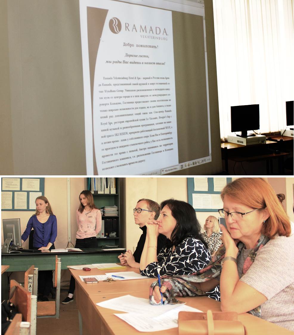 После вступительного слова Горобец М.В., были заслушаны сообщения по темам: «Требования к папке гостя» и «Использование MS Publisher в профессиональной деятельности», подготовленные студентами А. Вершининой и А. Львовой. Студенты 1ГС-11 выполняли проекты по реальным гостиницам и отелям, предварительно изучив официальные сайты предприятий, что составляет подготовку к будущей производственной практике. Неподдельный интерес к проекту выразился в творческом подходе к работе.