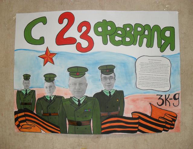 С 10 по 22 февраля в нашем техникуме проходил Конкурс военно-патриотических стенгазет. Так в нашем техникуме отметили День защитника Отечества. В конкурсе участвовали 6 учебных групп разных специальностей – коммерсанты, бухгалтеры, технологи… Все газеты размещались в Галерее стенгазет. Было заметно, что все студенты старались проявить свои художественные способности и креативность. Все стенгазеты были по-своему хороши и примечательны, и жюри было трудно определиться с победителями. Наконец, 22 февраля состоялось подведение итогов конкурса. Первое место завоевала стенгазета группы 3К9. Второе место заняла группа 1Т2, третье – группа 1Б9. Все участники, занявшие призовые места, награждены дипломами и сладкими призами. Участники, оставшиеся без призовых мест, получили грамоты за участие в конкурсе. Все стенгазеты победителей представлены на фотографиях.