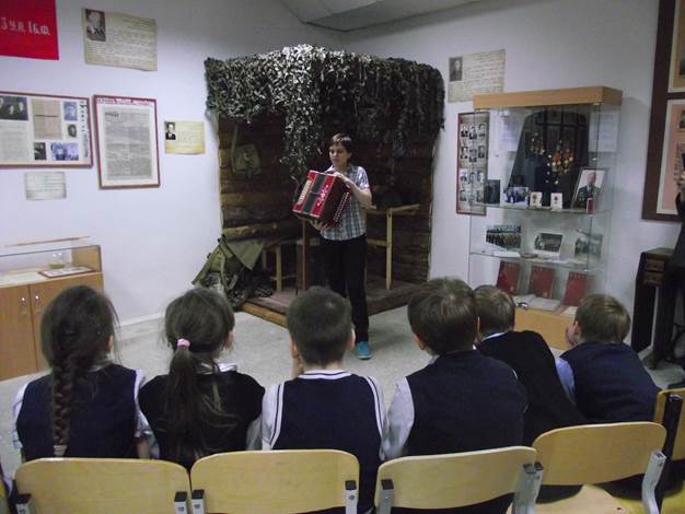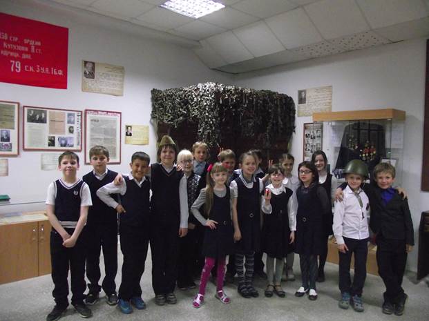 Ну что ж – просвещение в массы. И вот сегодня шумная гурьба из 16 третьеклассников идет по коридорам техникума, удивляя всех и вся. Внимательные и любопытные глазенки бегают по экспозиции, заглядывают во все уголки. Особенно удивила ребят землянка и простые, но такие интересные предметы солдатского быта военных лет.