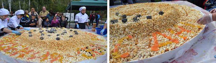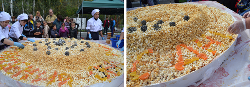 В субботу, 14 сентября наши студенты накормили горожан двухметровым тортом из попкорна. На протяжении 6 часов кулинары готовили попкорн, перемешивали сгущенку, а в финале блюдо покрыли натуральным медом.