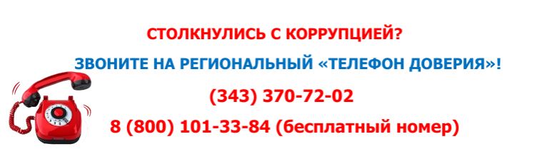 • “Телефон доверия” Департамента по противодействию коррупции Свердловской области тел. 8(343)312-00-40 (доб.02)
